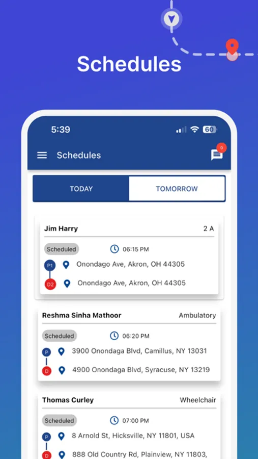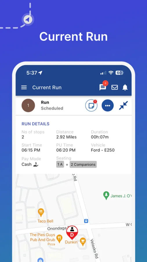 This particular app is for the drivers who are part of the team from Transportation provider. It gives them functions to carry on a ride which includes picking up patients and taking them to their destination, collecting payments. The drivers are constantly notified about the Rides allocated to them through out the day. The application brings in real-time updates whenever made. They can communicate back with the Dispatchers at the base.