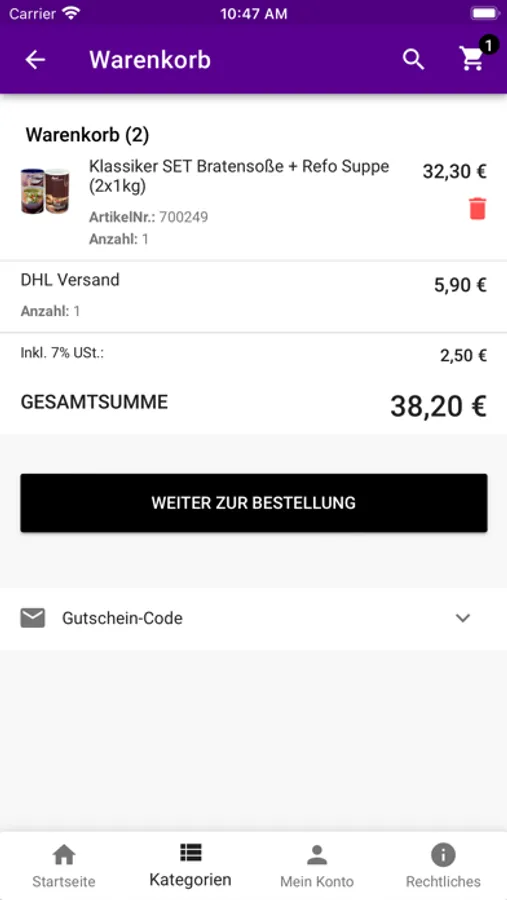 Erlebe mobiles Shopping in seiner besten Form! Mit nur wenigen Fingertipps kannst du deine Lieblingsprodukte bequem von überall aus bestellen. Kein mühsames Suchen mehr im Supermarktregal, denn das komplette Sortiment ist nur einen Klick entfernt.