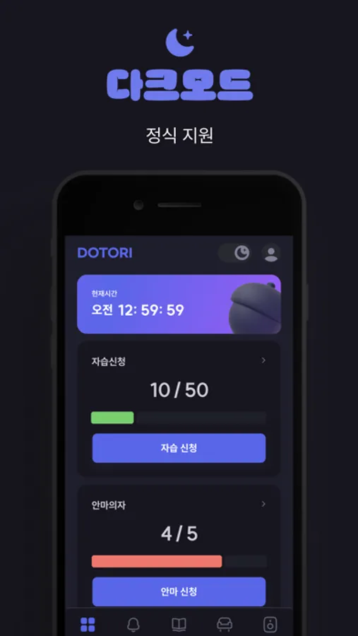 오늘 기숙사에서 자습, 안마의자를 사용하기 위해 손쉽게 신청할 수 있어요 !