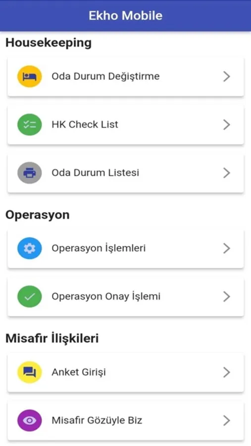 Otel içindeki operasyon işlemlerinin yapıldığı mobil uygulamadır