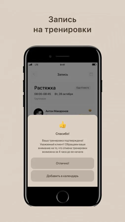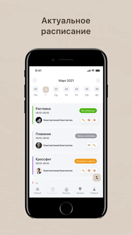 Посмотреть актуальное расписание тренировок и записаться в один клик;