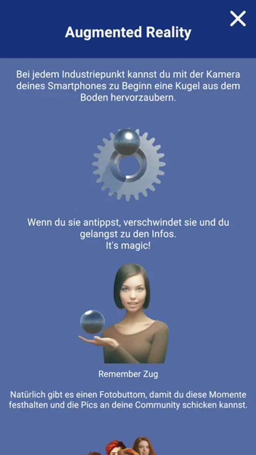 Mit Augmented Reality (AR) kannst du an jedem Industriepunkt eine Kugel aus dem Boden zaubern, die beim Antippen interessante Informationen und Fakten über den jeweiligen Standort preisgibt. Zu den 12 Industriepunkten gehören unter anderem der Metalli, die Wasserwerke Zug, die Reformierte Kirche und natürlich die berühmten Standorte von Landis & Gyr.