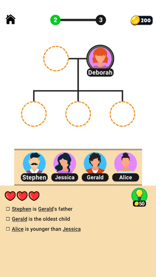 Logic puzzles and challenges of Family Tree provide mental stimulation, encouraging critical thinking, problem-solving, and logic skills, which is especially beneficial for cognitive health. Family Tree logic game combines the excitement of solving puzzles, building towns, and unlocking various family stories. Family Tree IQ game allows users to collect clues related to their ancestors or historical events. These clues are used to unlock new branches of the family tree and reveal hidden secrets.