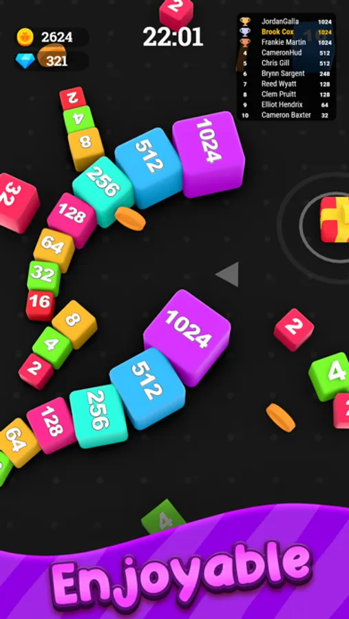 Jelly Cube Run 2048 is a modern twist of the classic snake and 2048 games. Control your cube and navigate it around the game area, merge as many cubes as possible to grow longer and more powerful. But beware! Other players are on the prowl, ready to outmaneuver, trap, and eliminate you to claim victory for themselves.