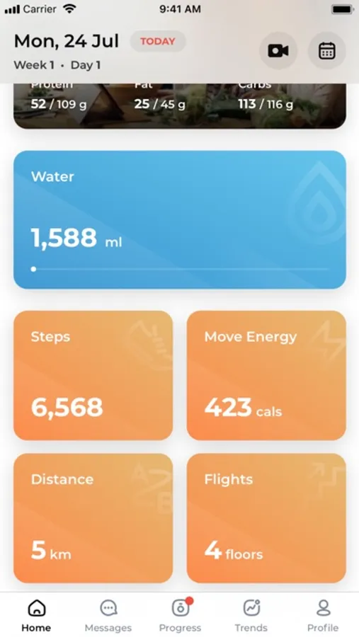 The app integrates with Apple Health to show your daily activity - distance, steps, active energy, and flights to help you better achieve your goals.