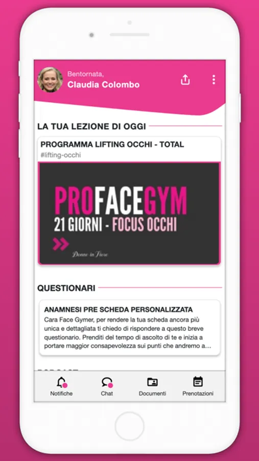In quest'app oltre a masterclass, ebook, workbook e tantissime videolezioni di Pro Face Gym, trovi comodamente la tua scheda viso personalizzata per lavorare efficacemente sul tuo volto e ottenere così nel concreto il suo massimo in modo mirato ed estramamente accurato. Oltre a questo, trovi con molta semplicità tanti altri materiali che ti permetteranno di ottenere un cambiamento profondo e duraturo anche interiore: meditazioni, lavori sul respiro, workbook con esercizi per cambiare il tuo mindset, registrazioni di workshop a tema ciclictà e piacere femminile e tanto altro.