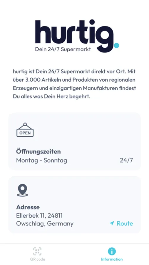 Du kannst in unseren Märkten rund um die Uhr mit der hurtig-App oder deiner hurtig-Kundenkarte einkaufen ohne Probleme.