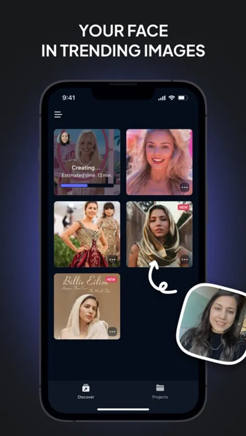 Have you ever wondered how you’d look with a punk hairstyle, as a rapper, or even in an iconic movie scene? Dive into the world of FaceOff and reimagine yourself in countless ways!