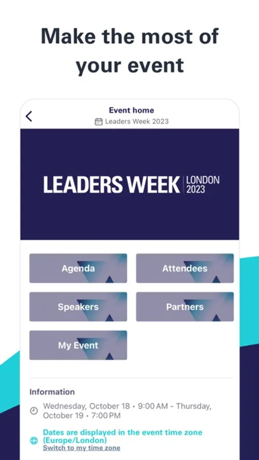 This app supports all global events hosted by Leaders, including Leaders Week London and Leaders Sport Business and Performance Summits.