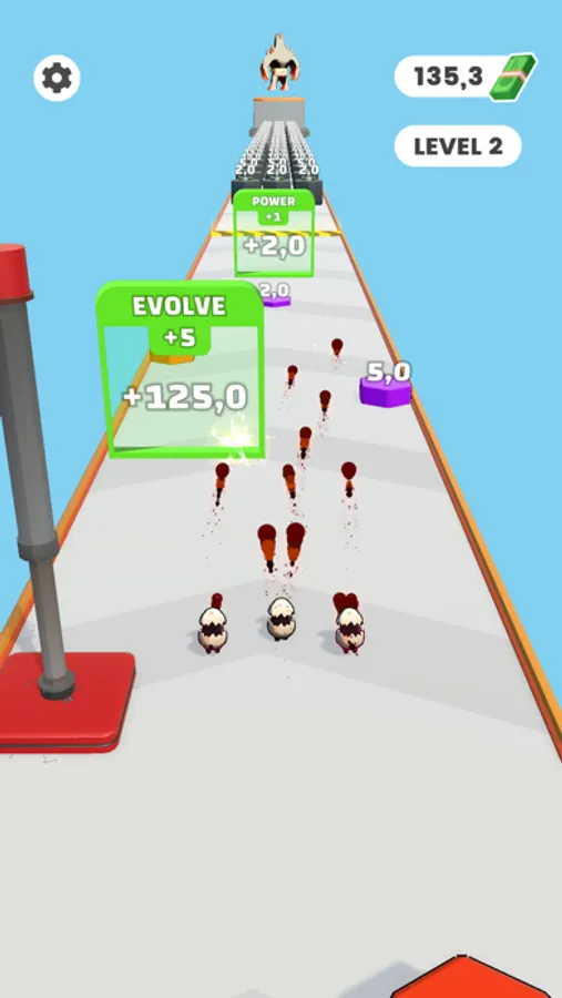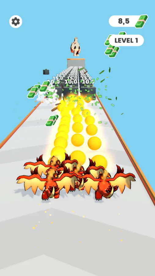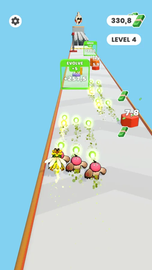 Evolve different monsters with the cards you have developed. Try to reach the end of the level with your strengthened monster team.