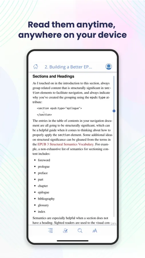 OnSecure is an interactive eBook Reader Application. The App comes in a stunning new design, refreshing eBook Interface, book download capabilities and a host of features to enhance your learning. It seamlessly integrates eBooks with videos, synched audios, image banks and interactivities for an engaging eBook reading experience.