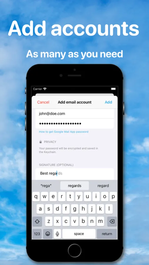 Set up your email provider of choice in the app, and you're good to go. Every major email provider allows sending with SMTP protocol. You'll just need to create a specific password. There are links for instructions in the app to help with that.