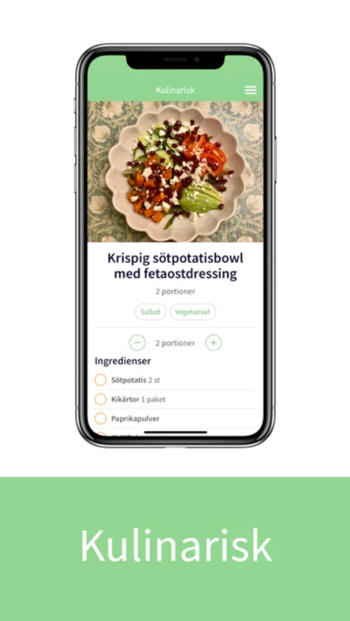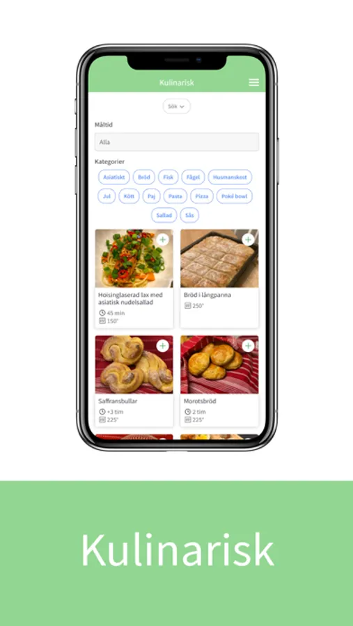 - Med Matsedeln och egna kategorier på recepten blir det enkelt att organisera och planera veckans måltider.