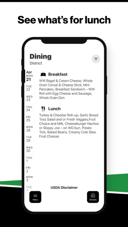 Within the dining section, you’ll find an easy to navigate, weekly menu, sorted by day and meal type.