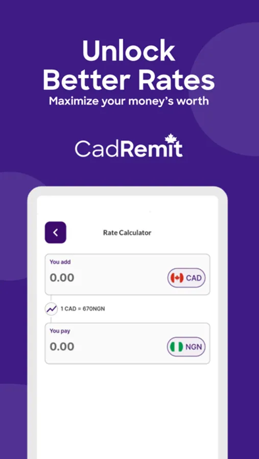 Our app offers a seamless and secure experience, allowing you to convert Naira to CAD at the prevailing exchange rate and add funds to your Cadremit balance effortlessly. Say goodbye to complex and time-consuming money transfers as Cadremit streamlines the process for your convenience.