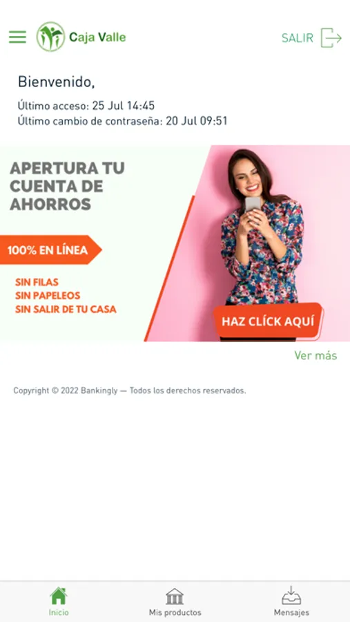 A un solo click de distancia, toda tu información financiera de tus cuentas de Caja Valle y la facilidad de hacer movimientos entre ellas y saber todos tus movimientos y saldos al instante. ¡¡Descárgala ya!!
