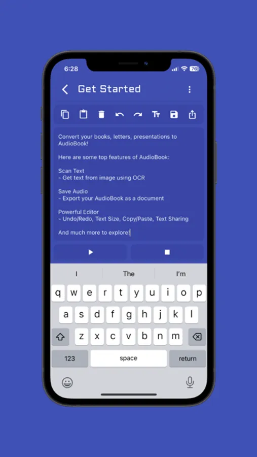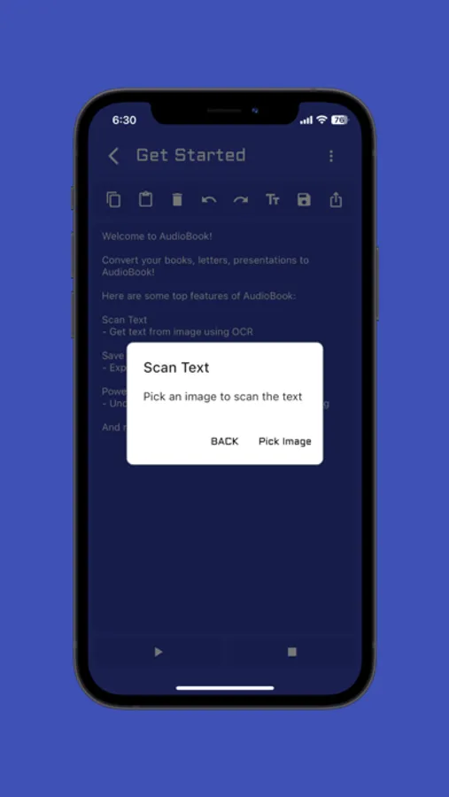 2. Scan Text: Advanced OCR technology allows you to extract text from images effortlessly. Simply snap a picture of any text, and AudioBook will convert it into editable text ready for narration.