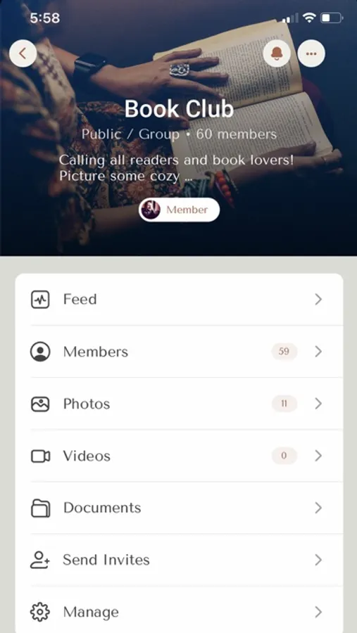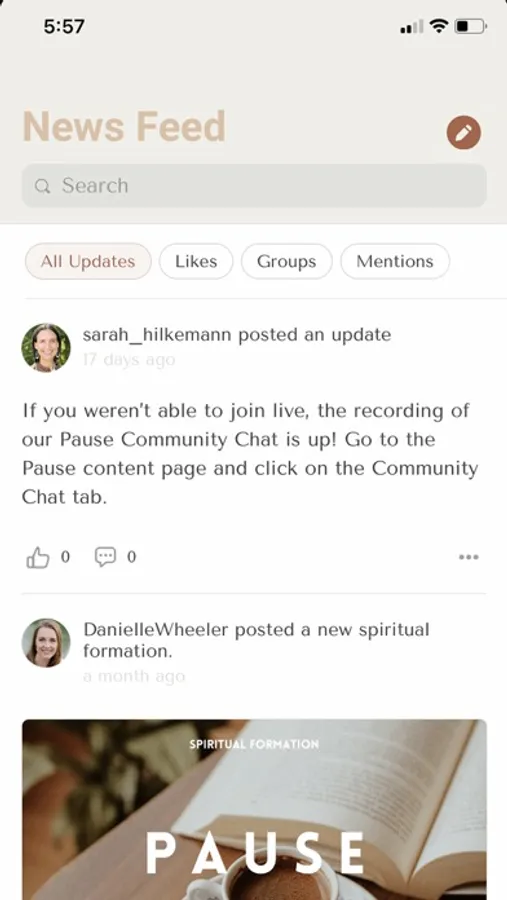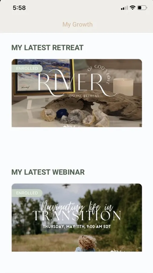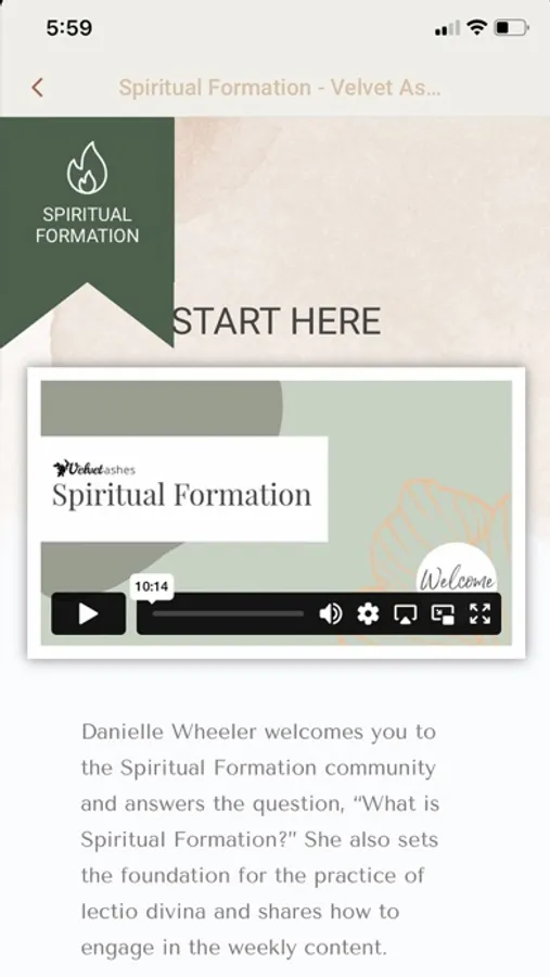 Includes: Monthly Themes, Book Club, Spiritual Formation meditations, Chat Groups, Resource Library, Recipe Center, Favorites, and Growth Experiences.