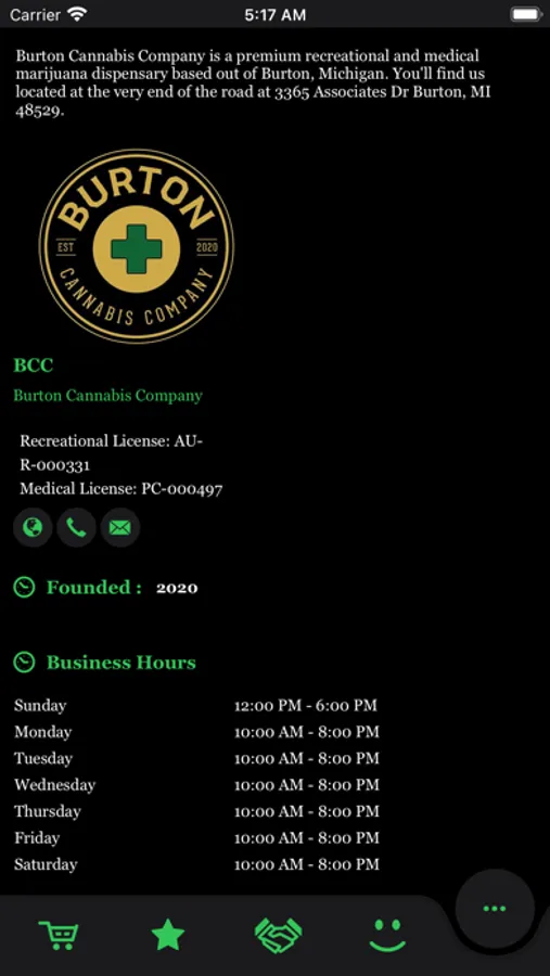 The OFFICIAL app for BCC (Burton Cannabis Company, located at 3365 Associates Dr Burton, MI 48529)..place an order, get exclusive deals, and more! See more at burtoncannabisco.com and don't hesitate to come by and say high.