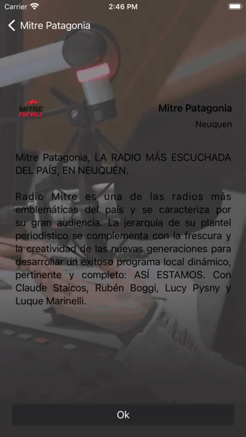 Radio Mitre es una de las radios más emblemáticas del país y se caracteriza por su gran audiencia. La jerarquía de su plantel periodístico se complementa con la frescura y la creatividad de las nuevas generaciones para desarrollar un exitoso programa local dinámico, pertinente y completo: "ASÍ ESTAMOS". Con Claude Staicos, Rubén Boggi, Lucy Pysny y Luque Marinelli.
