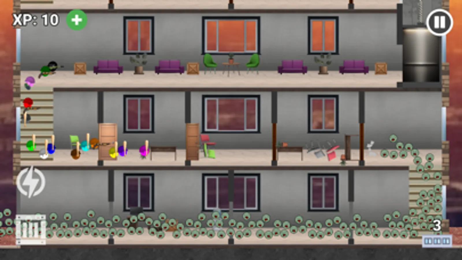 Zombie Tower Escape is a strategic game where you help colored marbles in a race for survival through a tall building, all while eluding relentless zombie marbles. Navigate through progressively challenging levels, striving to earn all stars by ensuring each marble reaches the helicopter atop the tower. Alternatively, test your mettle in the 'Endless Tower' mode, aiming to endure and surpass your high score.