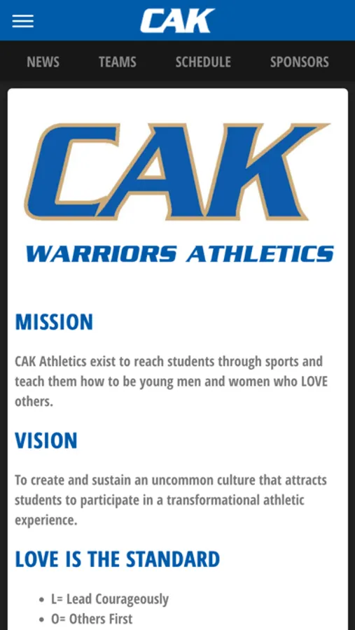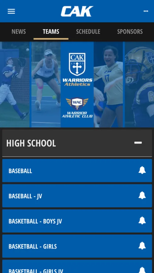 The CAK Athletics app is provided and operated by the Christian Academy of Knoxville and features LIVE scoring, schedules, news updates, and rosters for all participating CAK Warriors teams and organizations.