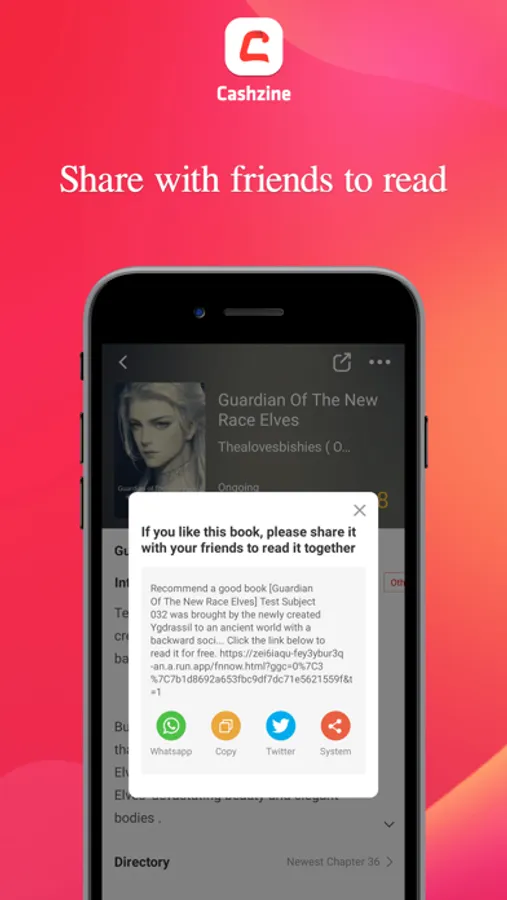 Cashzine is a network novel reading App. Users can earn gold coin rewards by reading novels on Cashzine, and these gold coins can be exchanged for VIP reading cards to get more reading benefits. The system will recommend content you like based on your reading habits.