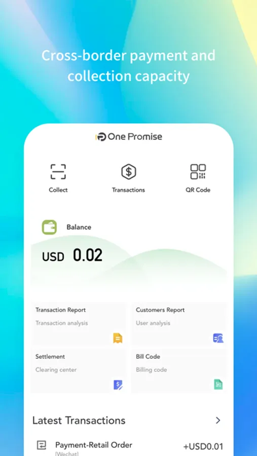 One Promise is a cross-border payment collection app that helps merchants complete payments conveniently and quickly, as well as manage their transaction flows.