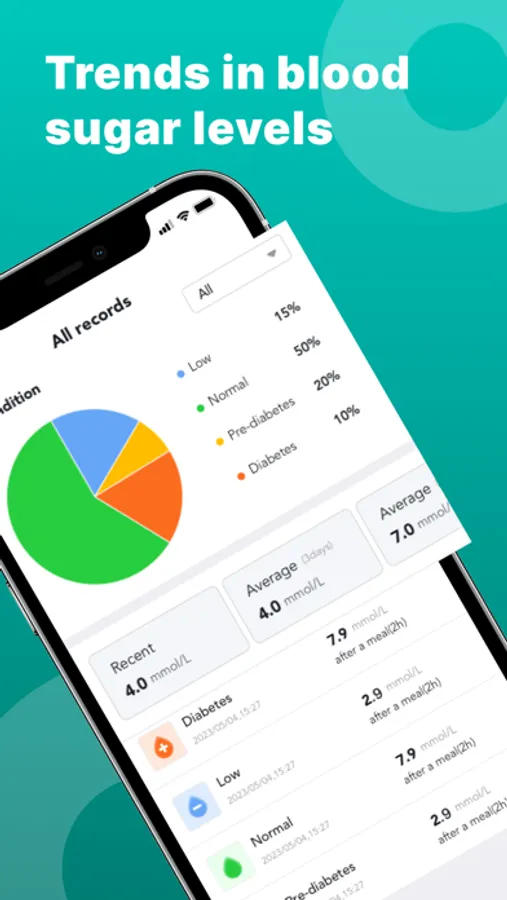 We will also provide you with the function of sharing blood sugar knowledge. Our app only provides the function of recording blood sugar and cannot detect blood sugar. If you need to test blood sugar, please use professional medical equipment.
