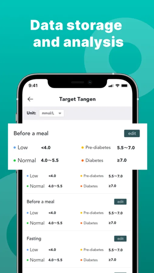 - Use and set different blood sugar level units - mg/dl or mmol/l;