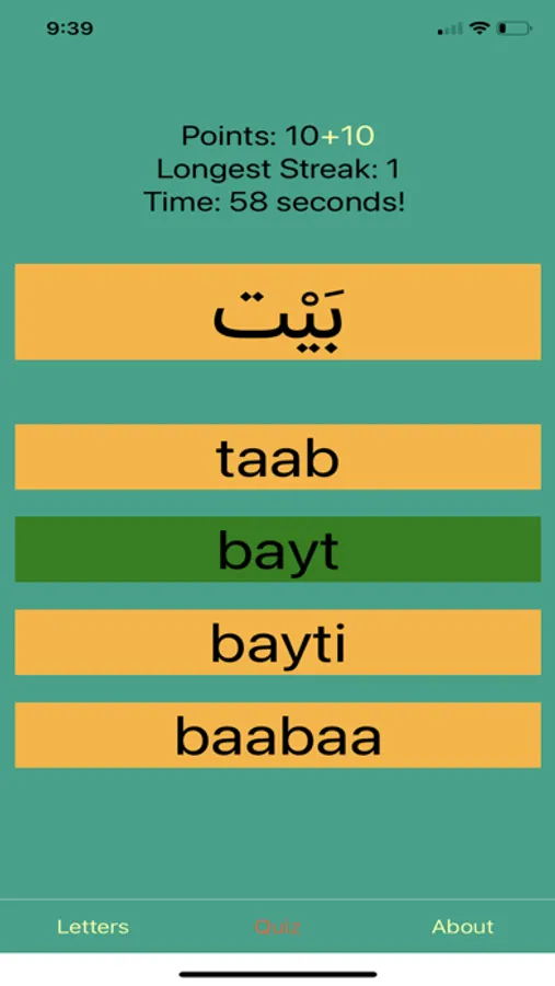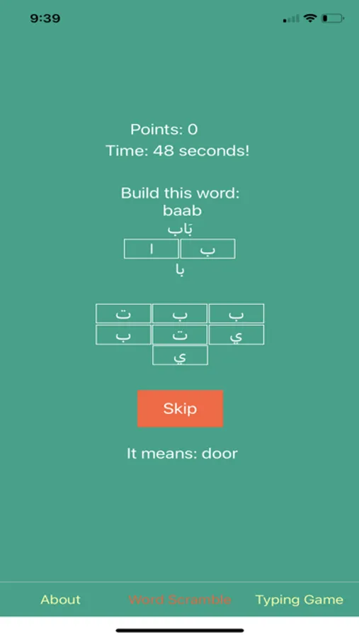 After familiarizing yourself with the letters, learn how to use the Harakaat (short vowel marks). Then, follow each lesson to learn how to use the new letters you've learned in common words. In the word games section, you can find word scramble and typing games to go along with each lesson to help you practice building words.{"n"}