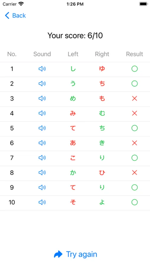 Kana Peanuts provides a set of quizzes where you listen to a Hiragana / Katakana pronunciation and select the correct character. By repeating practices using the app, you will be able to listen and understand Hiragana and Katakana more and more smoothly. Once you become able to answer everything without struggle, you are ready to move on to the next step on your journey of studying Japanese!