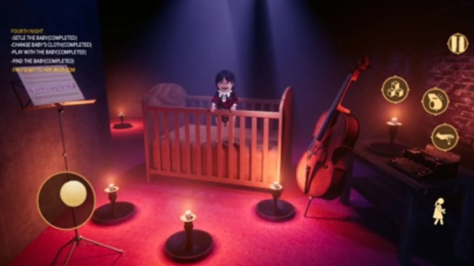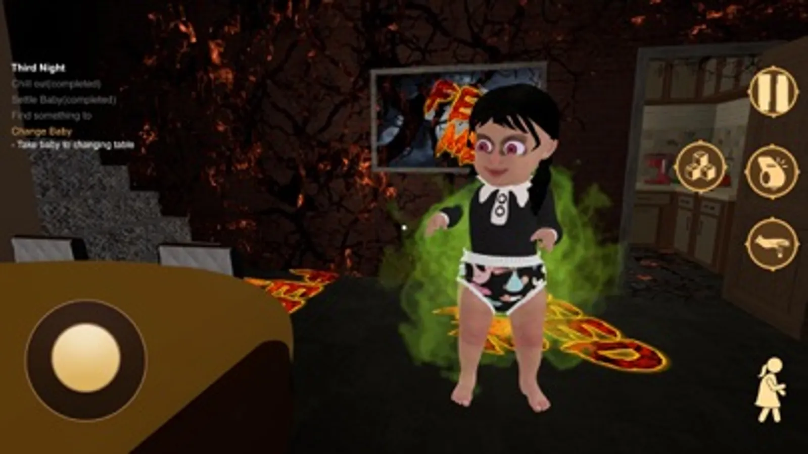 In the grim depths of an abandoned mansion, Chapter "The Creeping Cries" unleashes the Scary Girl in Black, the eerie result of a cursed caretaker gone awry. Its haunting cries and skeletal frame exude terror, lurking in shadows, relentless in its pursuit. As the player, you must navigate the sinister corridors while being hunted by the malevolent entity, taking on the role of a brave caretaker facing unimaginable horrors. Will you unravel the mansion's dark secrets and protect yourself and the innocent girl, or will you succumb to fear and lose yourself in the darkness? Your choices dictate your fate in this heart-pounding caretaker nightmare.