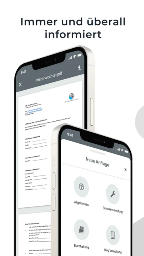 • Einfache Kommunikation mit Ihrer Verwaltung: Abwicklung von (Schadens-)Meldungen, Schlüsselbestellungen etc. direkt via Smartphone inkl. aktuellem Bearbeitungsstatus