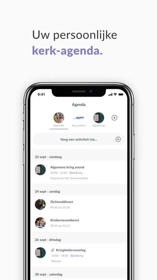 Dankzij onze unieke groepenstructuur helpen wij kerken beter te communiceren. Met de hele gemeenschap, maar ook onderling. U kunt zelf groepen toevoegen en mensen daarvoor uitnodigen. Een slimme timeline zorgt er voor dat iedere gebruiker persoonlijke en relevante informatie ziet.