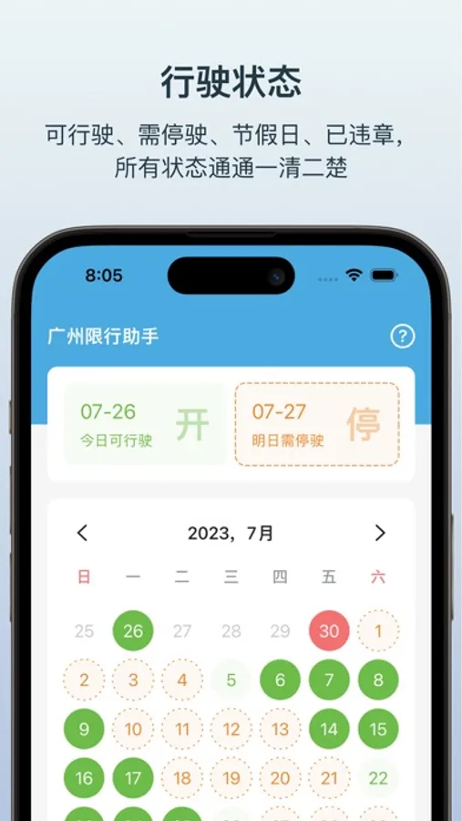 “开四停四”的规则相较于“单双号”来说,实在过于复杂。通过本助手记录行驶状态,可以帮你自动计算停驶日期,避免因遗忘、计算错误而造成的违章。