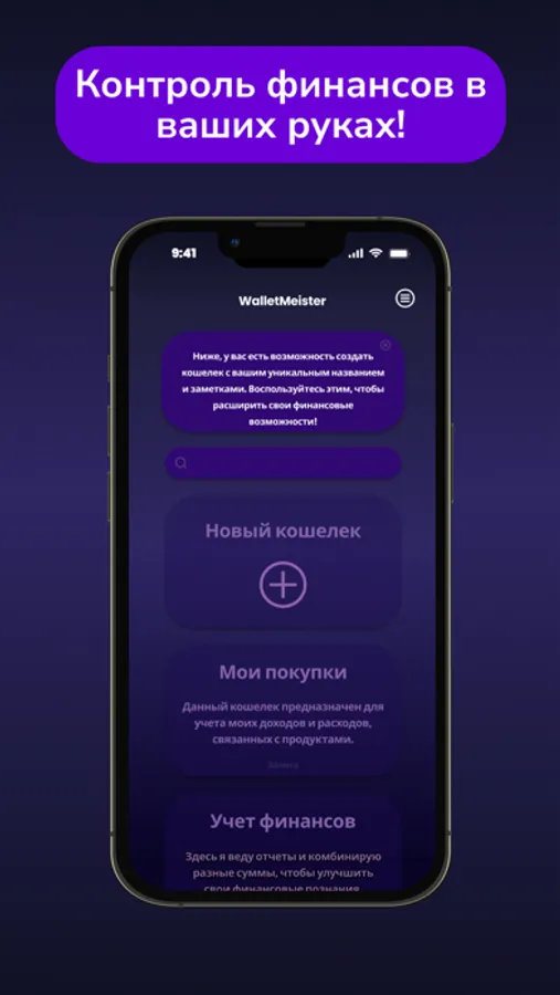 Добро пожаловать в WalletMeister - ваш личный помощник по управлению кошельками. Организуйте свои финансы, добавляйте пометки к транзакциям, настраивайте приложение под себя и всегда будьте в курсе последних новостей, связанных с вашими финансами. Уделяйте время тому, что действительно важно, а все финансовые дела доверьте WalletMeister.