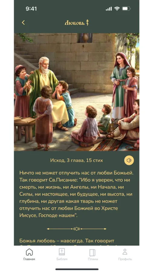 3. Пользовательские Настройки: Пользователи могут выбирать конкретные главы, книги или отрывки для чтения или прослушивания. Также доступна настройка скорости аудио для оптимального восприятия.