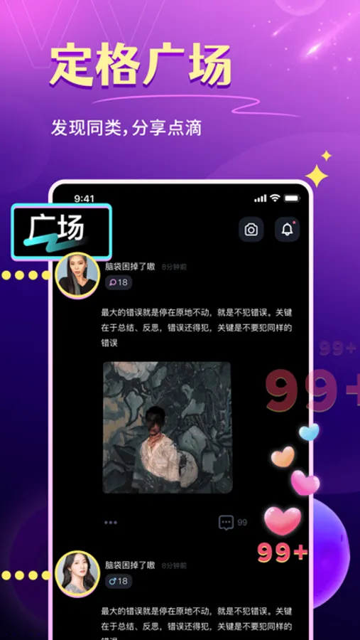 2、圈子社交:发现志同道合的人,远离emo、开启快乐!