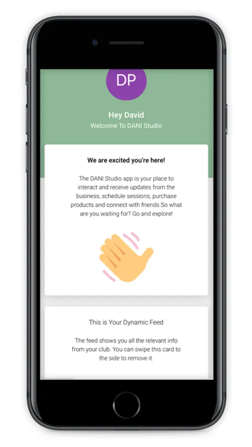 After setting up your personal profile in the app, you'll be able to easily renew your membership, purchase DANI-Studio merchandise and connect with other DANI-Studio members.
