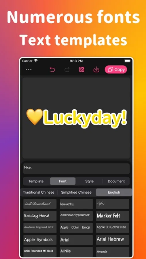 Tired of struggling with inadequate Font support on your phone? Our "FontFusion" app is your answer! This app allows you to freely use dozens of exquisite fonts in your STORY. Coupled with over a thousand exclusive design materials we provide, your stories will become the center of attention, standing out from the crowd!