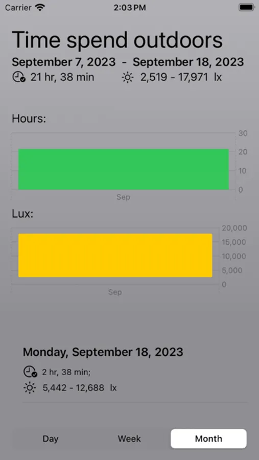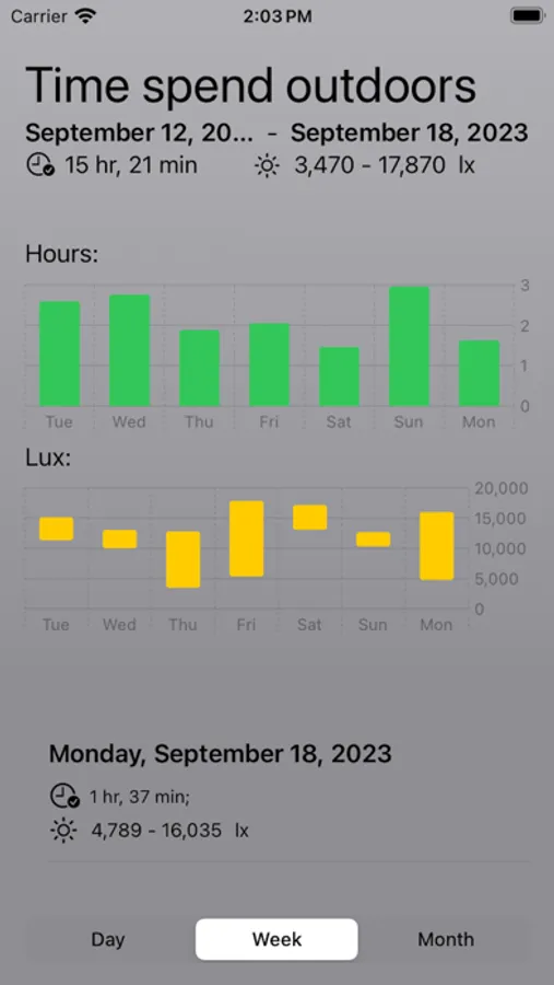 This app for iOS and watchOS is designed to help you track and show the time you spend outdoors. With its user-friendly interface and advanced features, you can easily monitor your outdoor activities and gain valuable insights. The app offers various display options, including widgets, complications, and visually appealing graphs, allowing you to view your outdoor time at a glance. Additionally, you have the option to subscribe to push notifications, which provide you with a daily summary of the minutes you've spent outdoors. Stay connected to your outdoor lifestyle and make the most of your time with our comprehensive outdoor time tracker app.