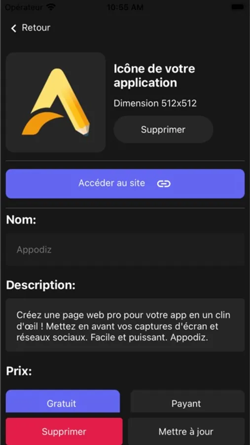 With our intuitive interface, add your logo and craft a captivating description to present your app in a modern and enticing manner. Capture your target audience's attention from their first visit and enhance your online presence.