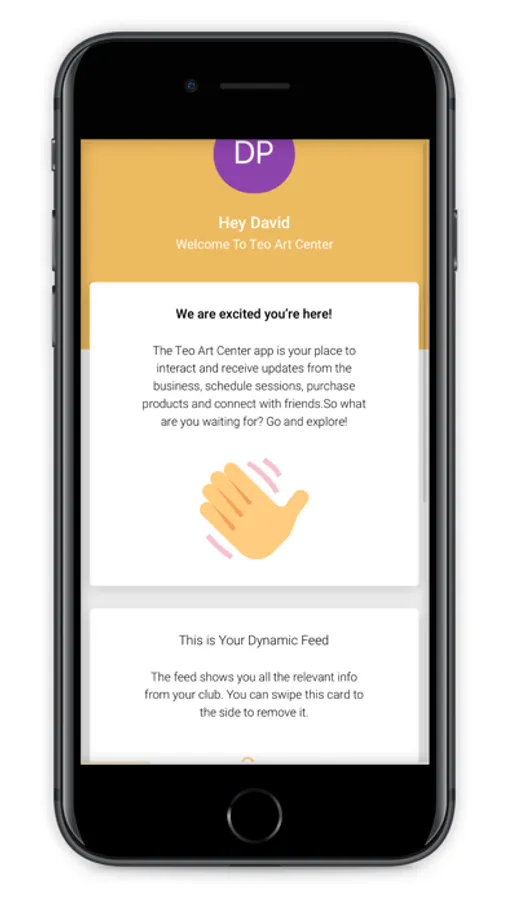 After setting up your personal profile in the app, you'll be able to easily renew your membership, purchase Teo Art Center merchandise and connect with other Teo Art Center members.