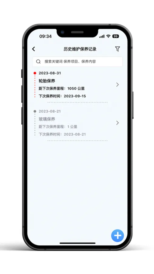 车辆维保可以方便的对车辆零部件做档案建立,并为后续的服务提供数据支持,支持一键完成保养并添加新的保养服务,当临近保养时,将会提醒车主与用户。