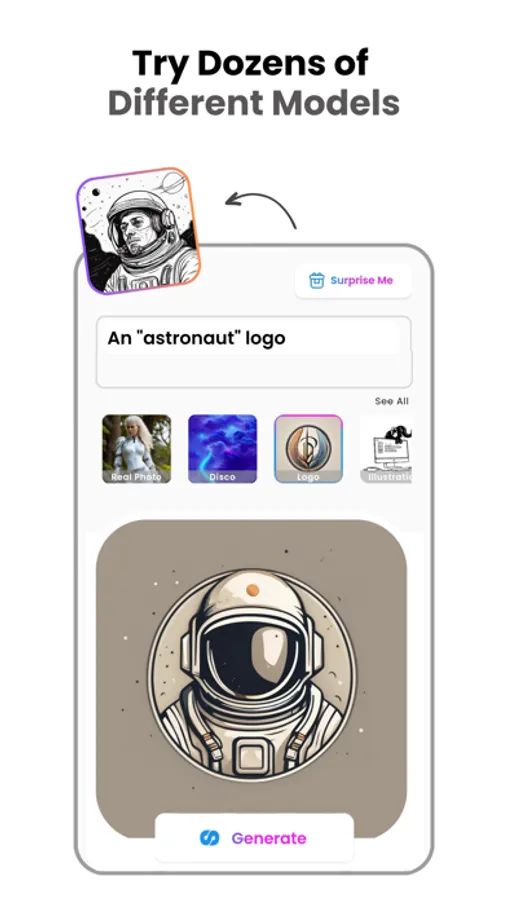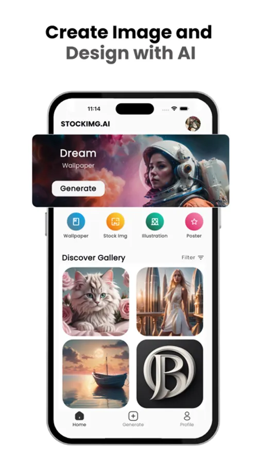Imagine having an art studio, a graphic designer, and a photo lab all wrapped up into one app on your phone. Stockimg AI is that and so much more. We offer various categories for image creation including wallpapers, logos, illustrations, arts, and posters. But that's just the beginning. We're not about merely making images, we're about creating experiences.