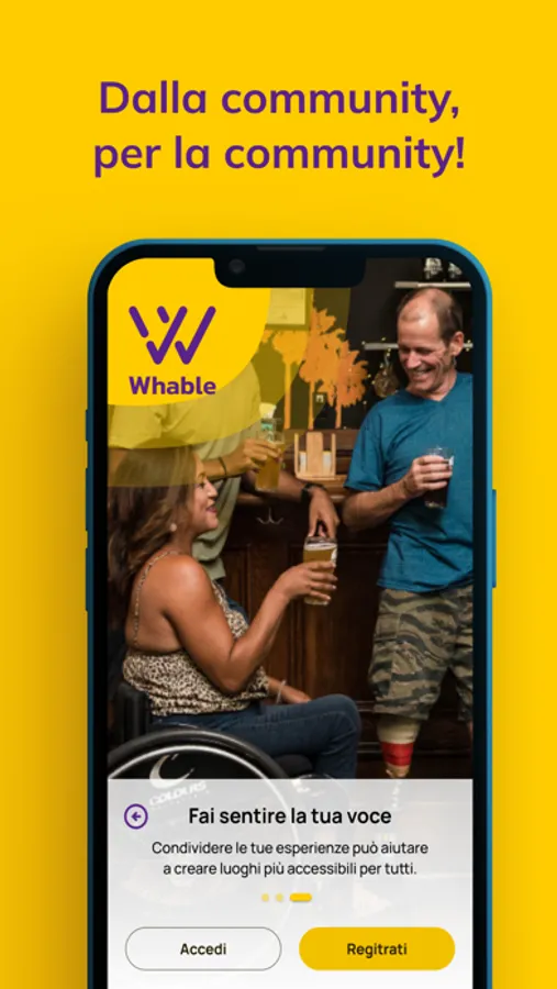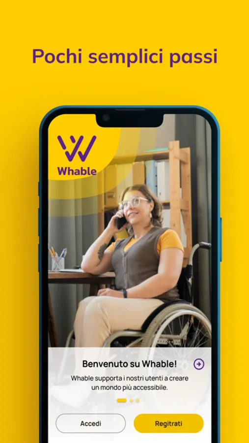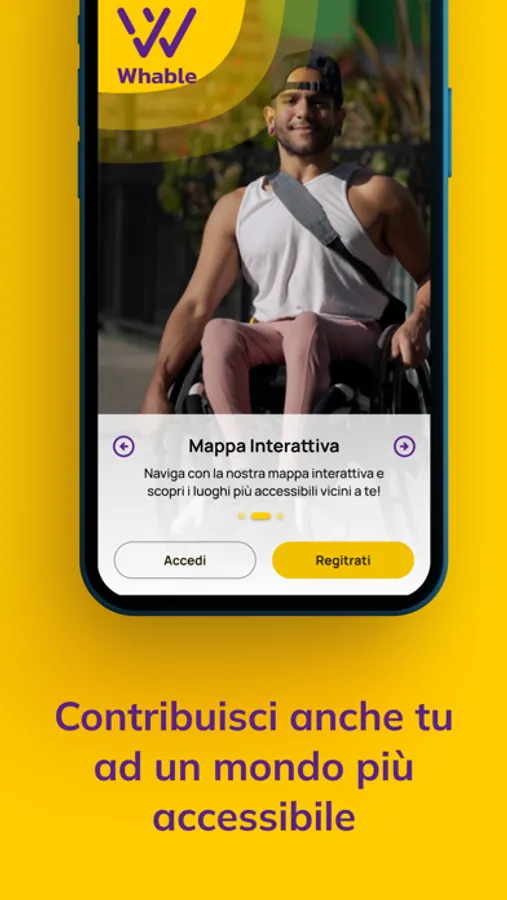 Whable è un'applicazione pensata per supportare le persone con disabilità motorie o limitazioni fisiche nel raggiungere la loro libertà e autonomia, fornendo loro uno strumento facile ed efficace per raccogliere informazioni sul livello di accessibilità dei luoghi circostanti.