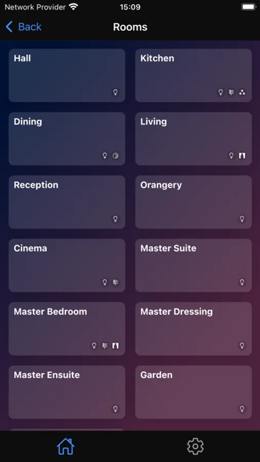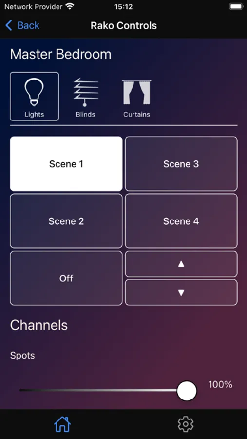 The App gives control of any room, whether it be lighting or curtain/blind control. Access to all available rooms, scenes and channels, all of which can be named for easy identification.