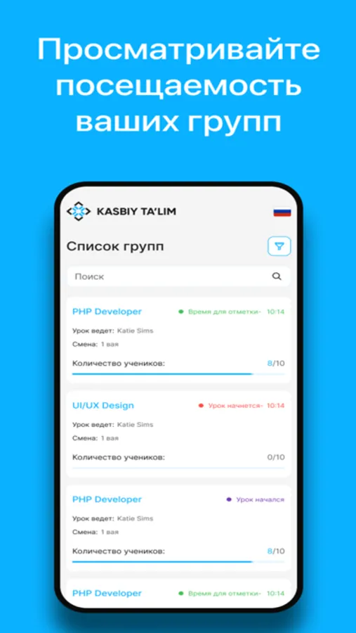 Kasbiy Ta'lim-Dastur kasbiy-talim.uz kompleks platformasida o'quvchilarni yuzni tanib olish funksiyasi orqali (Face Control) kunlik davomatini yuritish uchun mo'ljallangan. Shuningdek, dasturda o'quv markazlaridagi o'qitish ahvolini real vaqt rejimida monitoringini olib borish va statistik ma'lumotlarini yuritish imkoniyati yaratilgan.