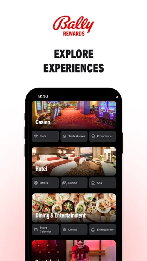 • Discover personalized deals and discounts tailored just for you—from dining to entertainment. The Bally Rewards app is packed with ways to save and enhance your experience.